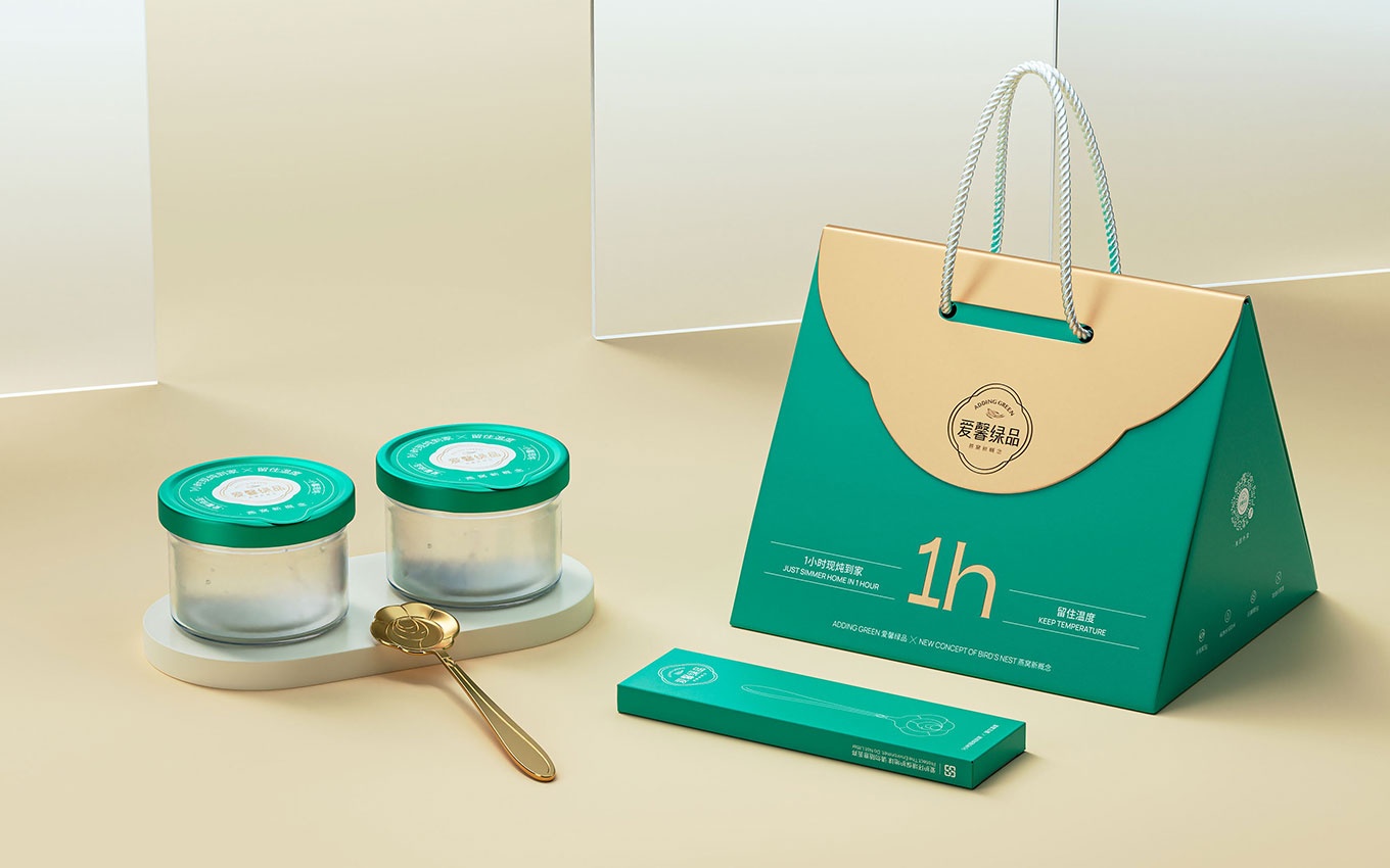 在本次愛馨綠品現燉燕窩的"外賣禮盒"產品包裝設計中,我們對燕窩包裝的屬性進行了深入思考。燕窩作為一種輕奢產品,其包裝不僅體現了產品的品質,更重要的是給消費者帶來一種儀式感和體驗。